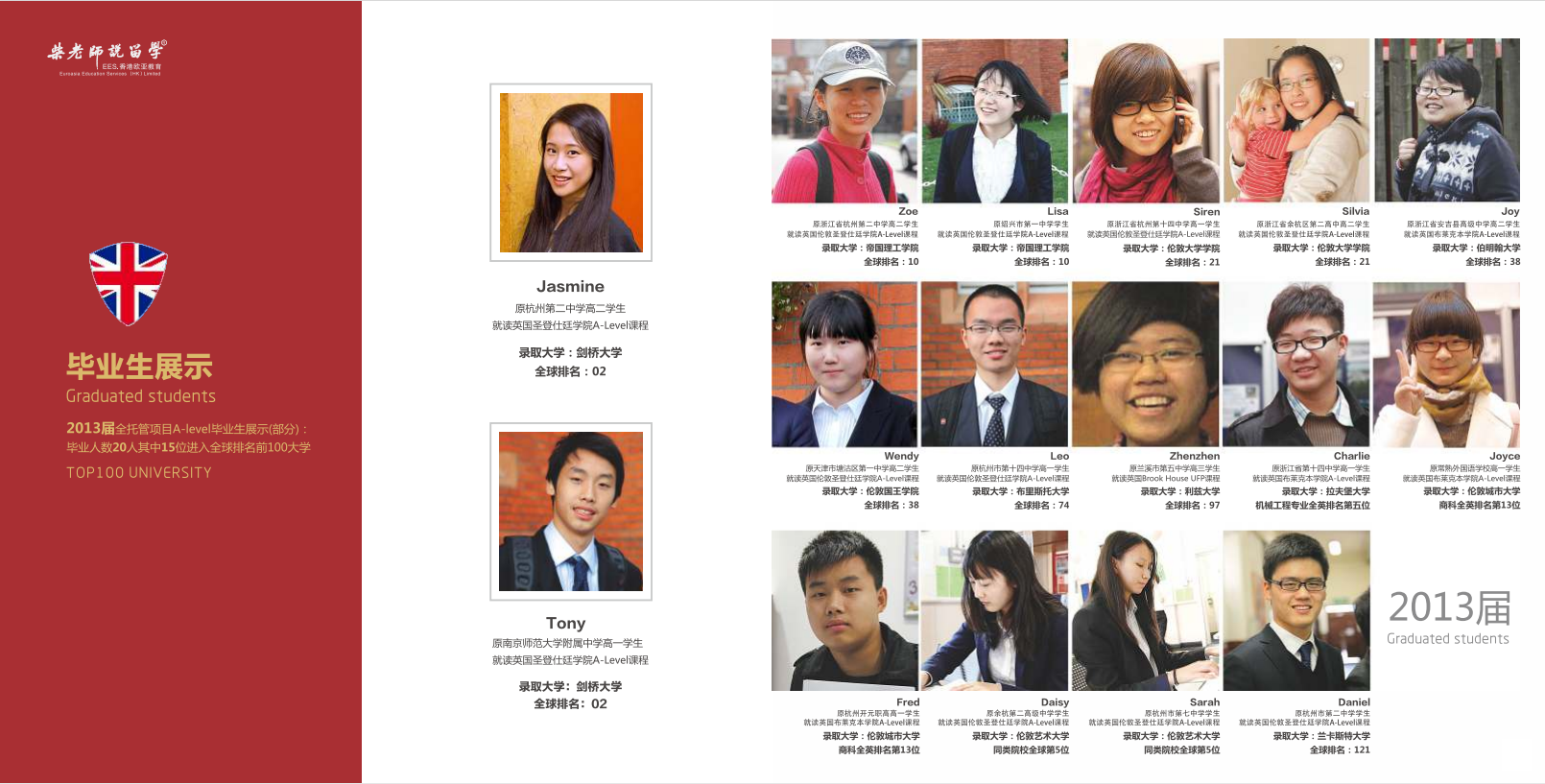 原浙江省杭州第二中学学生, 就读英国圣登仕廷学院A-Level课程录取大学:剑桥大学