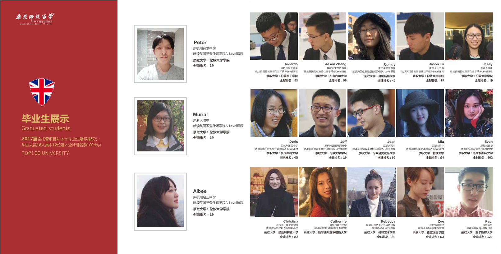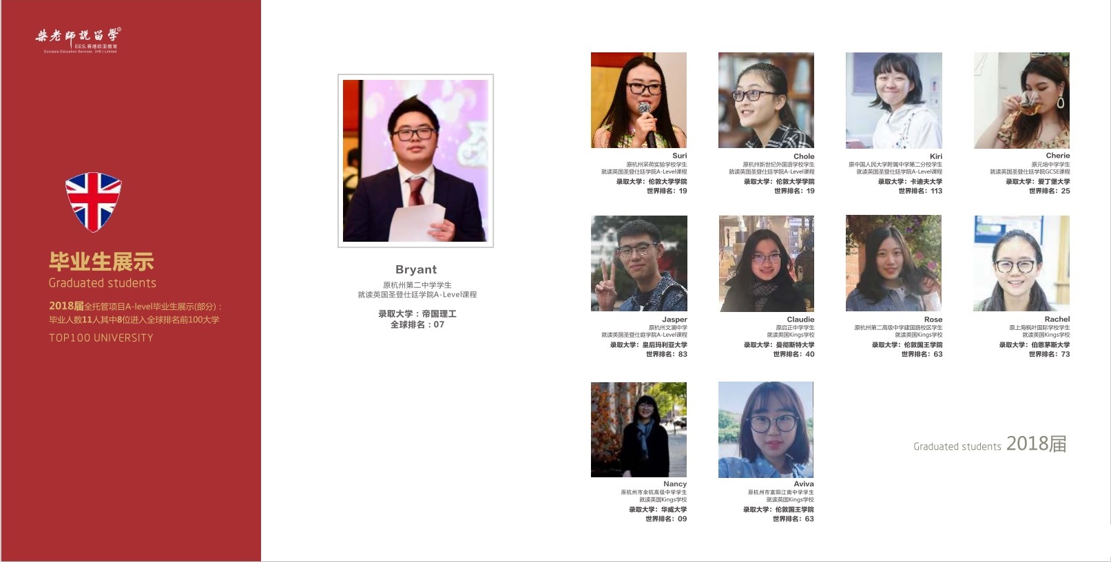 每年80%以上的学生进入全球TOP100大学